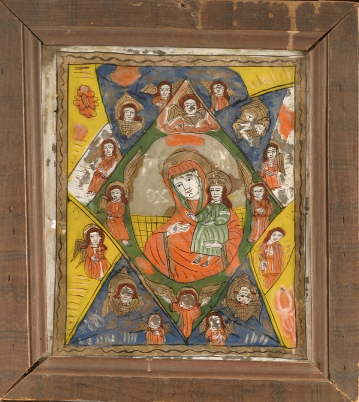 Une icône sur bois miraculeuse de la Mère de Dieu exsudant des larmes provoqua, vers 1694, de nombreux pèlerinages dans le village de Nicula où se trouvait cette icône. A cette époque, la Transylvanie faisait partie de l’Empire d’Autriche. Les pèlerins originaires de toute l’Europe souhaitaient emporter avec eux un souvenir du lieu du miracle. Les habitants du village commencèrent alors à peindre des icônes sur verre, en imitant au départ les images religieuses vendues chez eux par des colporteurs venus d’Europe centrale (Bohême, Autriche, Silésie, Galicie). Bientôt, la peinture sur verre devint un phénomène de masse. Tous les habitants du village peignaient, et tous les membres d’une famille se partageaient les différentes opérations : approvisionnement en verre, préparation des couleurs, reproduction des contours, remplissage, confection des cadres et des panneaux postérieurs.