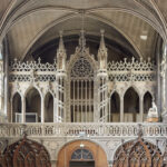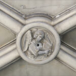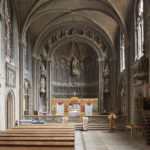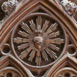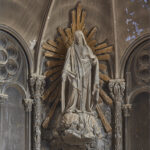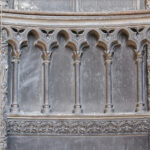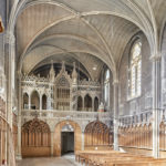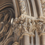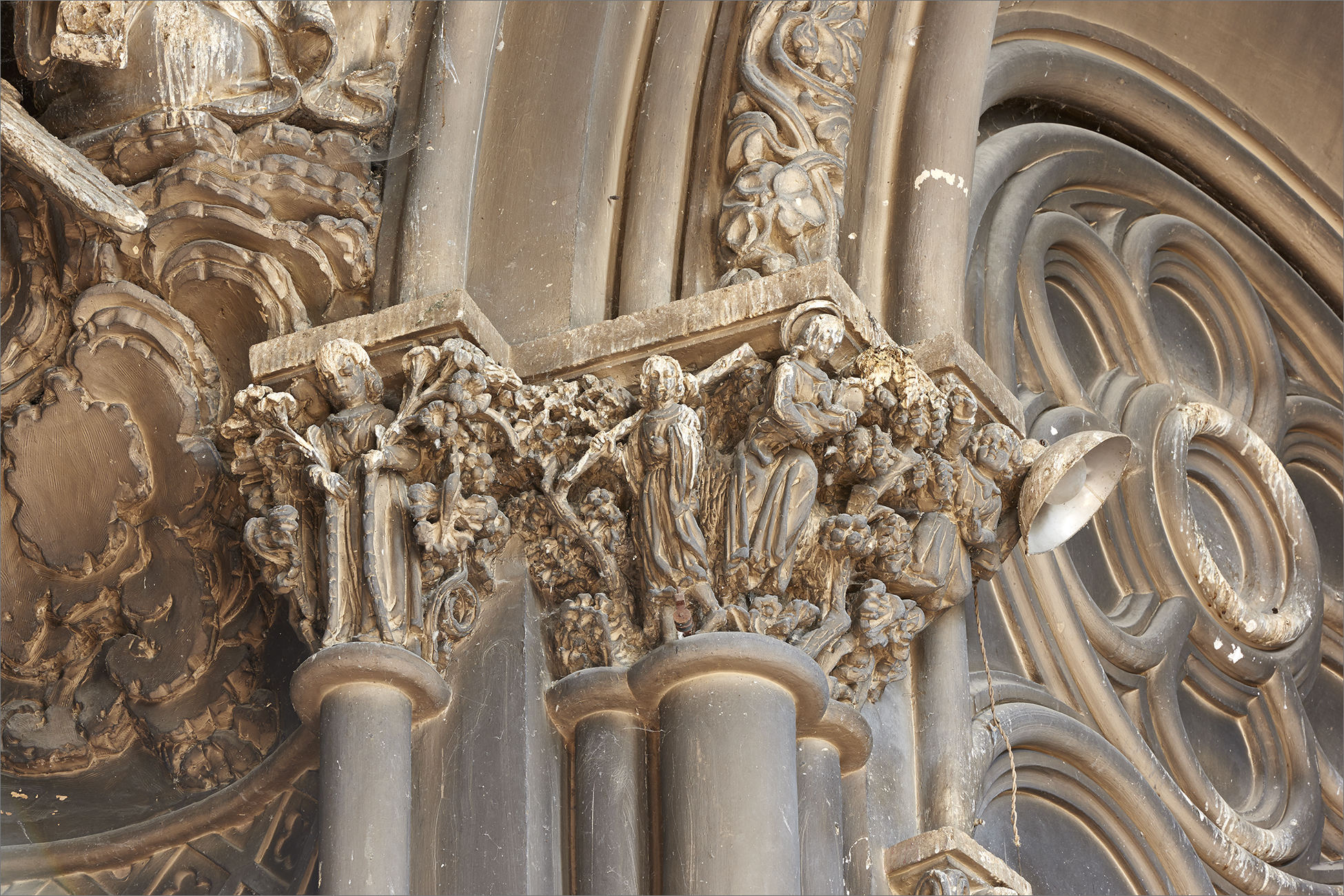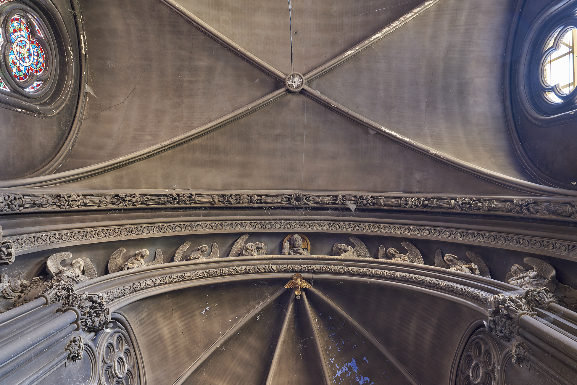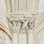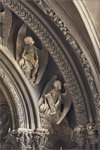 Les colonnettes de l’abside sont entièrement sculptées de feuillages parmi lesquels figurent des oiseaux et des têtes d’anges.
