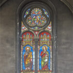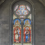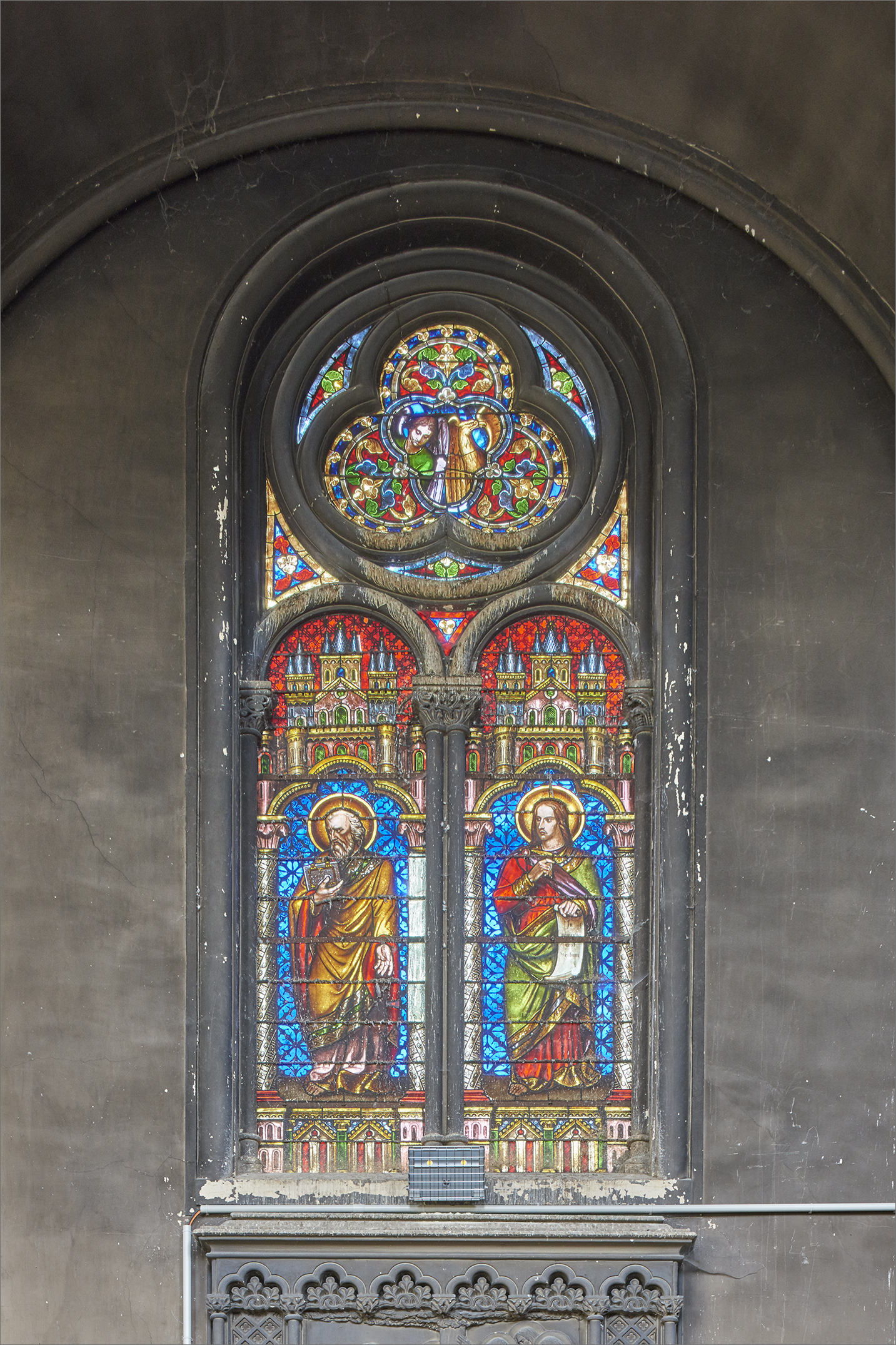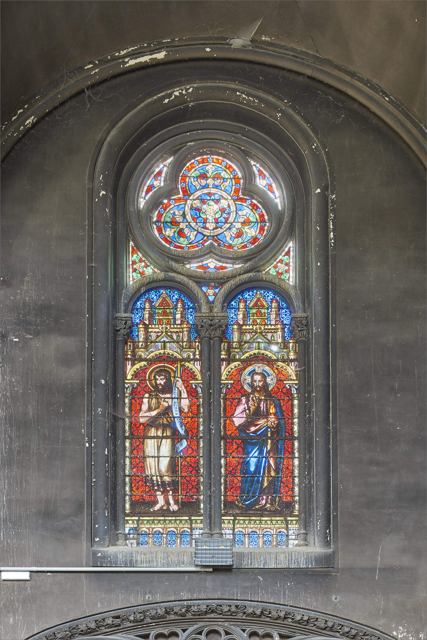 Deux des verrières d’origine sont encore en place : elles représentent les évangélistes saint Matthieu (symbole : ange), saint Jean (symbole : aigle) et saint Jean-Baptiste avec le Christ bénissant.
